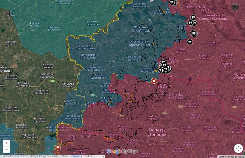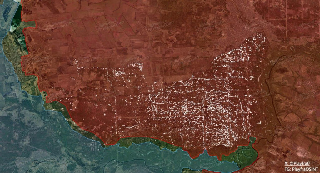 Así, si bien Ucrania desarrolló una contraofensiva en el norte de Prokovsk, (aunque los últimos informes dan cuenta no solo de que los rusos contuvieron el golpe, sino que comenzaron nuevamente las ofensivas), lo cierto es que las tropas del Kremlin ya están peleando y consolidando posiciones dentro de la ciudad y, al mismo tiempo, se están acercando peligrosamente a la E50, tal como se puede apreciar en este mapa que registra sus cambios por georreferenciación de imágenes, lo cual estrecharía fuertemente el cerco sobre Prokovsk.