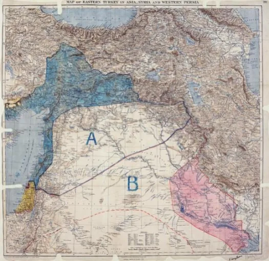 La caída del Imperio Otomano tras la Primera Guerra Mundial marcó la consolidación del dominio de británicos y franceses, que habían acordado cómo repartirse el botín. Los respective cancilleres, Mark Sykes y François George-Picot, habían firmado un acuerdo secreto en mayo 1916 que trazaba sobre el mapa con qué se quedaría cada uno. Era una alevosa traición a las promesas que esas potencias aliadas habían hecho a los árabes, acerca de otorgar la independencia si ayudaban a combatir a los ejércitos otomanos. Esta infamia, que pasó a la historia pintando de cuerpo entero la diplomacia imperialista, fue revelada al mundo un año y medio después cuando, en una de sus primeras medidas como Comisario del Pueblo para Asuntos Exteriores, Trotsky hizo públicos los acuerdos secretos firmados por el zar con los gobiernos británico y francés. El imperio ruso era la otra pata de los Aliados en la guerra, y en el reparto tenía sus pretensiones sobre territorio turco. Tras la revolución de octubre los bolcheviques abolieron la diplomacia secreta, renunciaron a las reclamaciones zaristas, proclamaron una paz sin anexiones y la defensa de la autodeterminación nacional. Los primeros pasos de la Unión Soviética mostraron cuán profundo era el antagonismo entre el gobierno obrero y las potencias imperialistas.